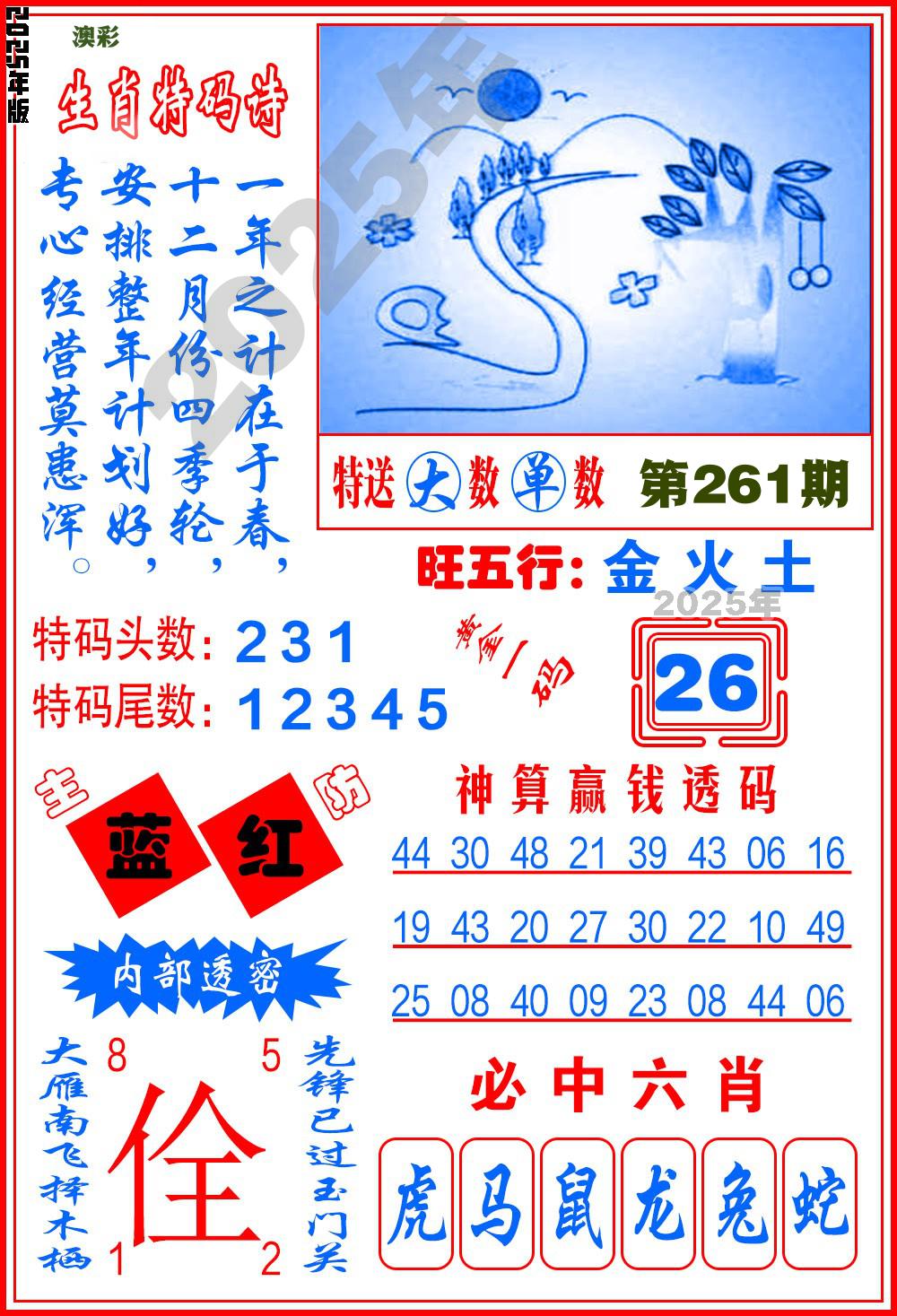2025年 第261期最新开奖结果