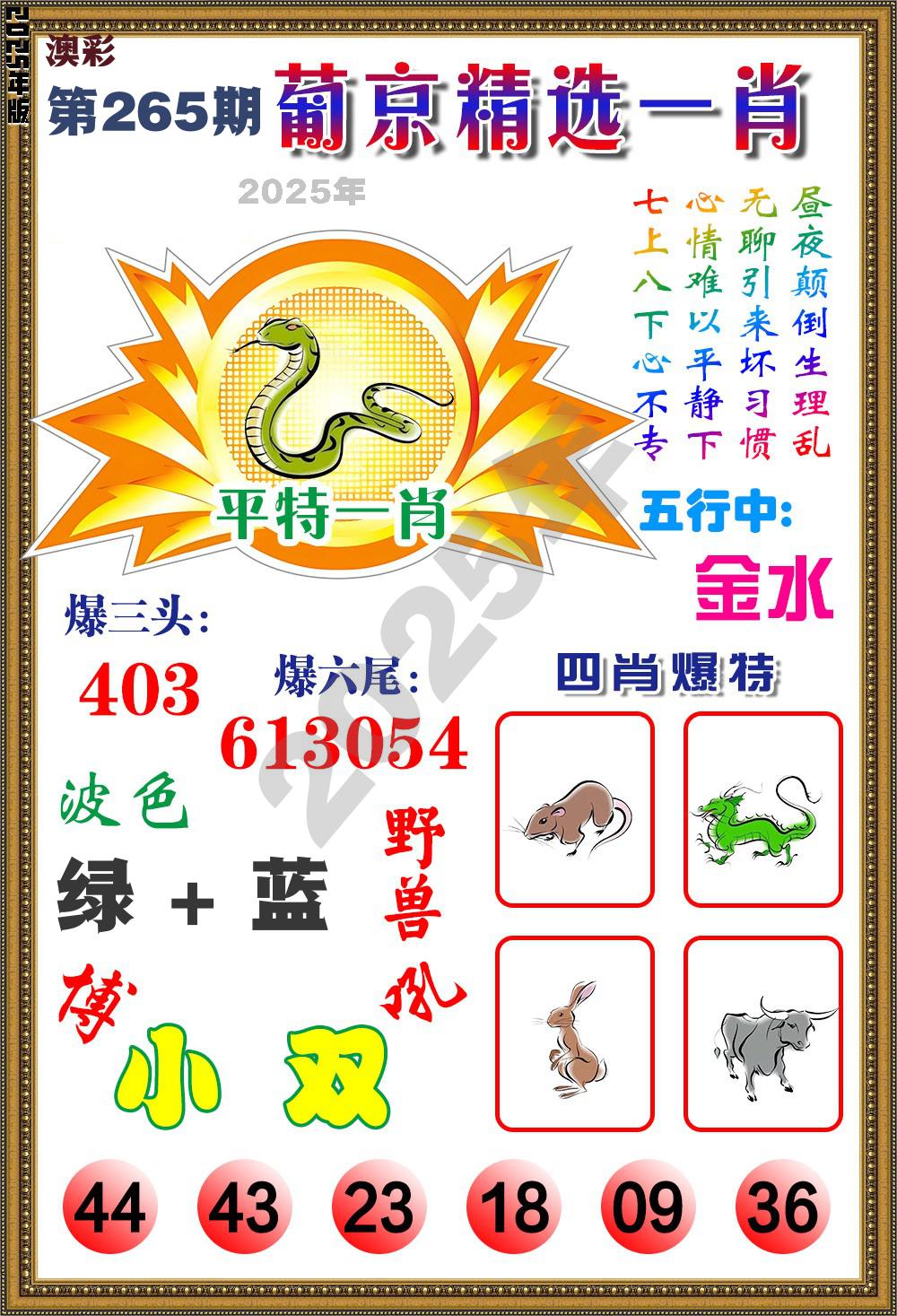 2025年 第265期最新开奖结果