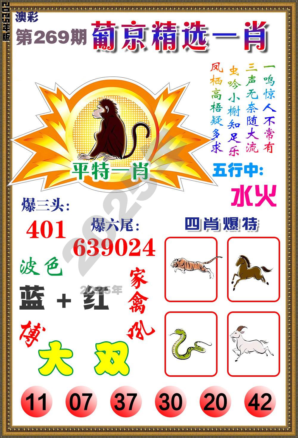2025年 第269期最新开奖结果