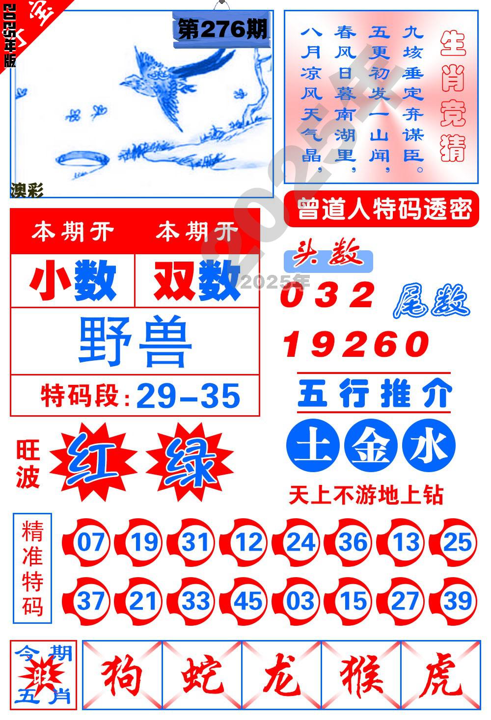 2025年 第276期最新开奖结果