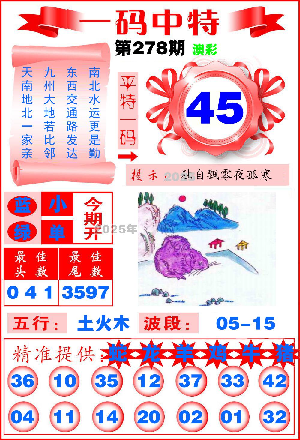 2025年 第278期最新开奖结果