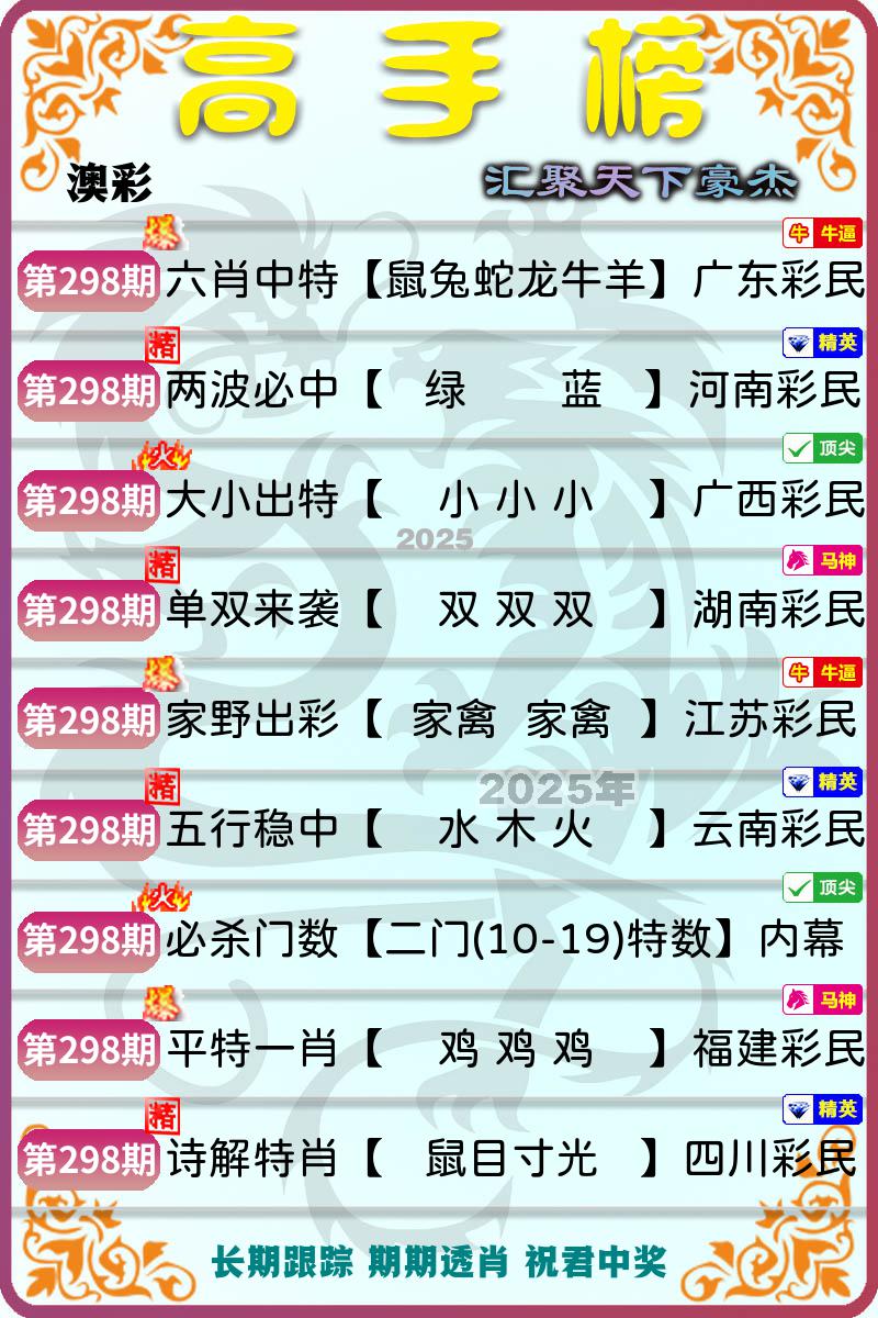 298期【打工仔】精选12码开?00准 【鸡鼠猪兔马羊】 |