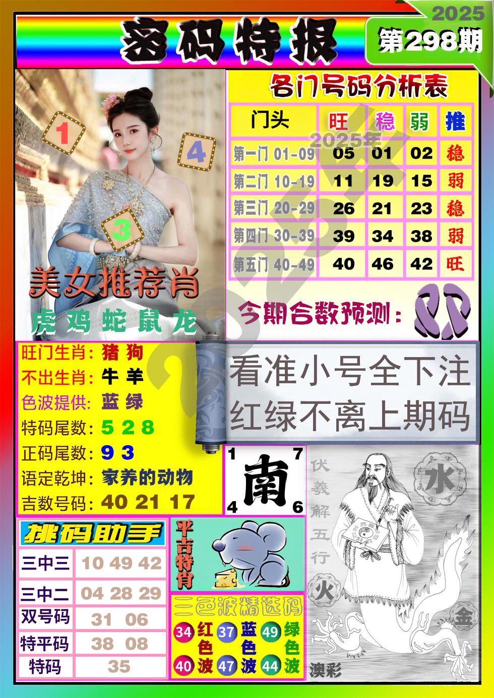 | 298期稳中⑦肖:猪牛蛇猴狗鼠兔 |