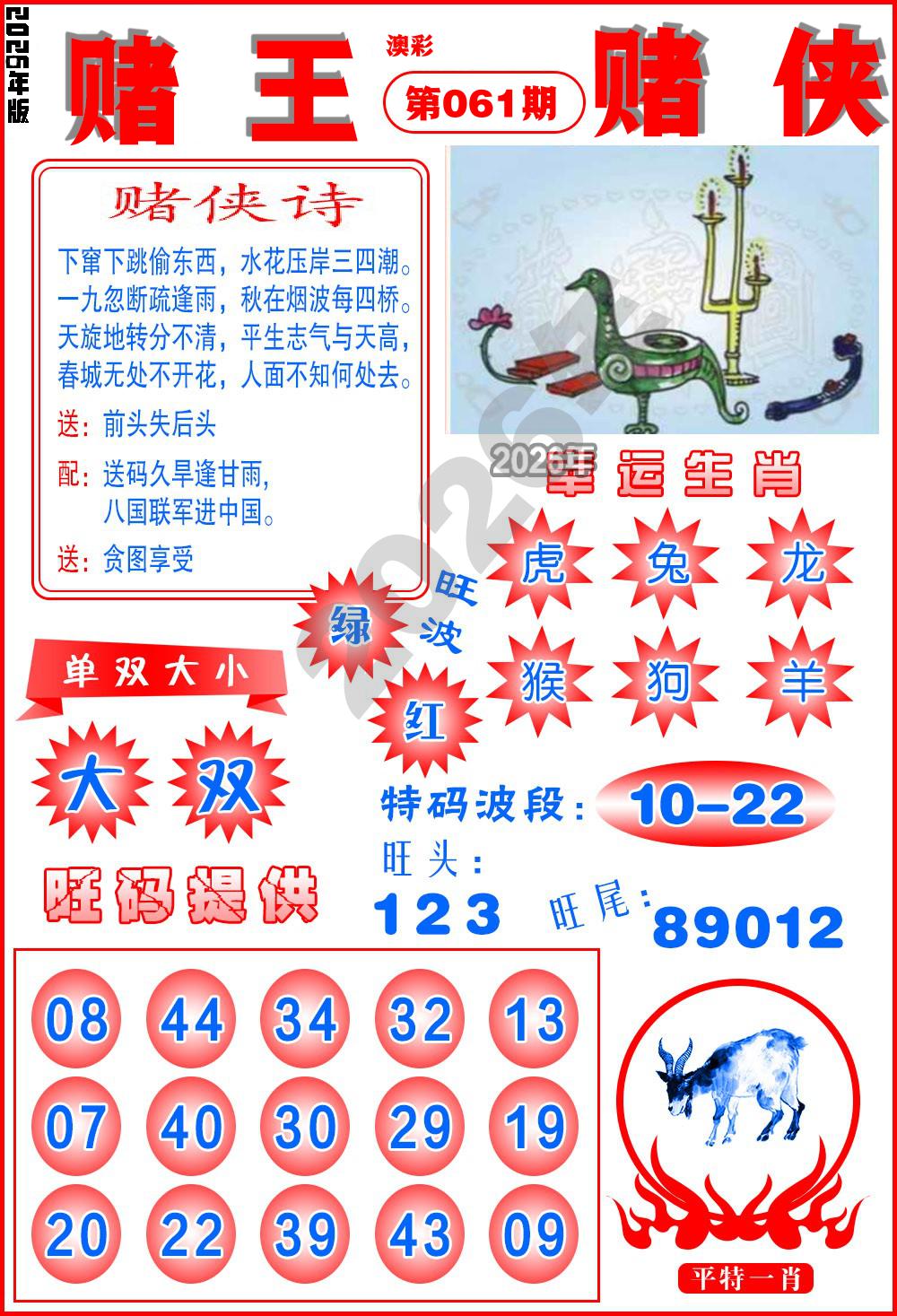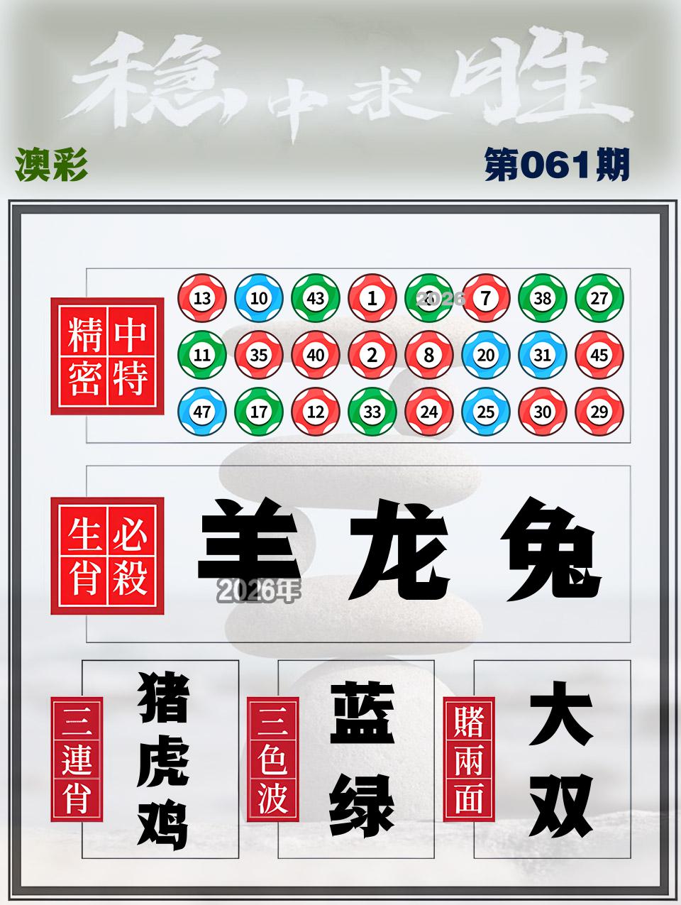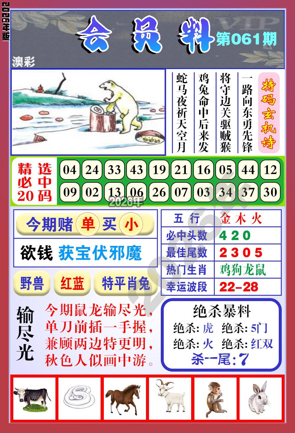 057期稳中⑦肖:虎羊猪鼠兔蛇猴