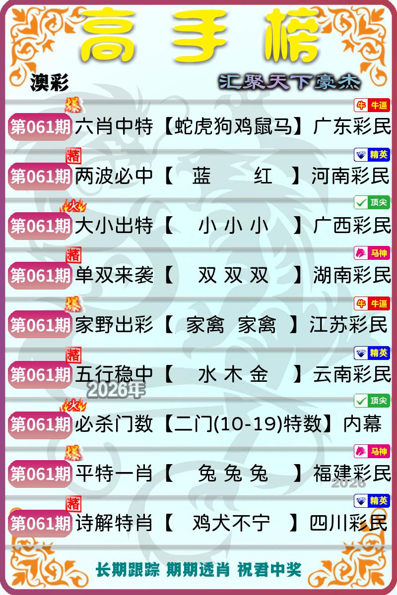 【鸡46.虎41.龙03.蛇26】