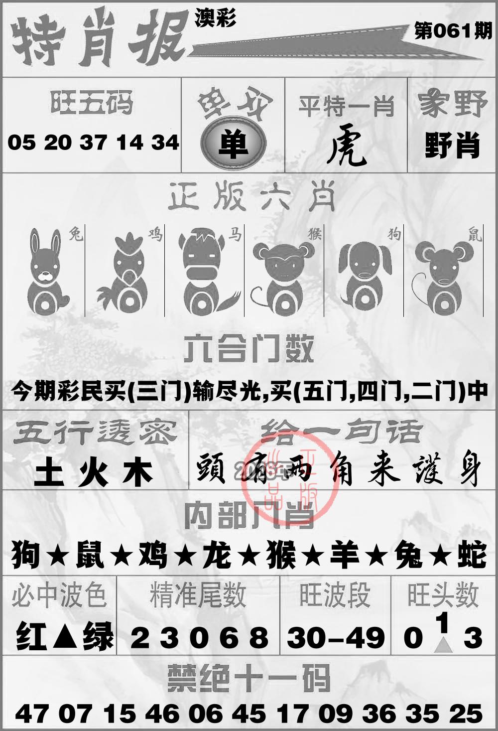 【狗45.虎05.牛42.马25】