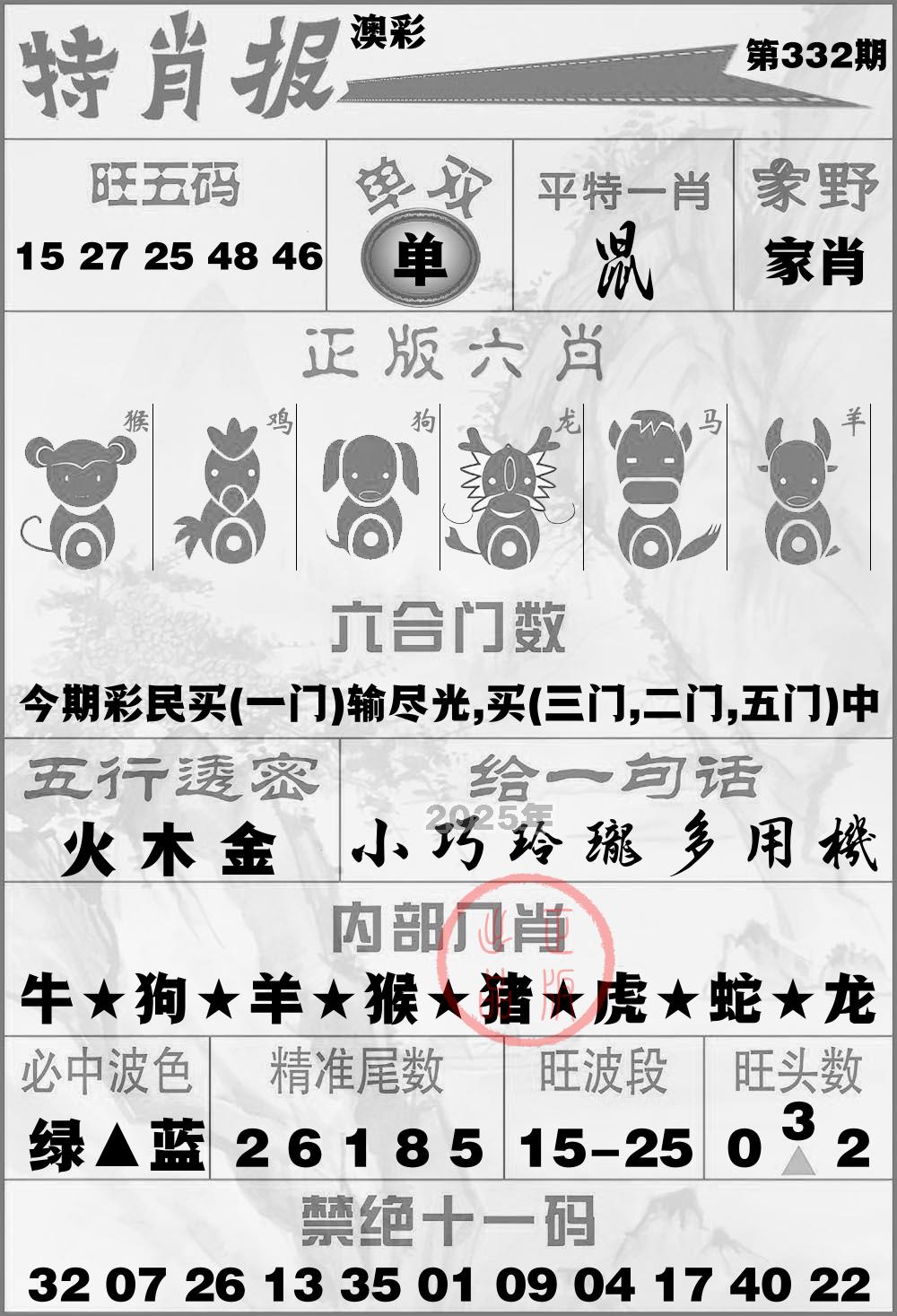 2025年 第332期最新开奖结果
