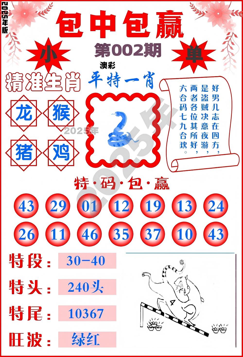 | 2025361期稳中⑤肖:蛇牛马虎猴 |