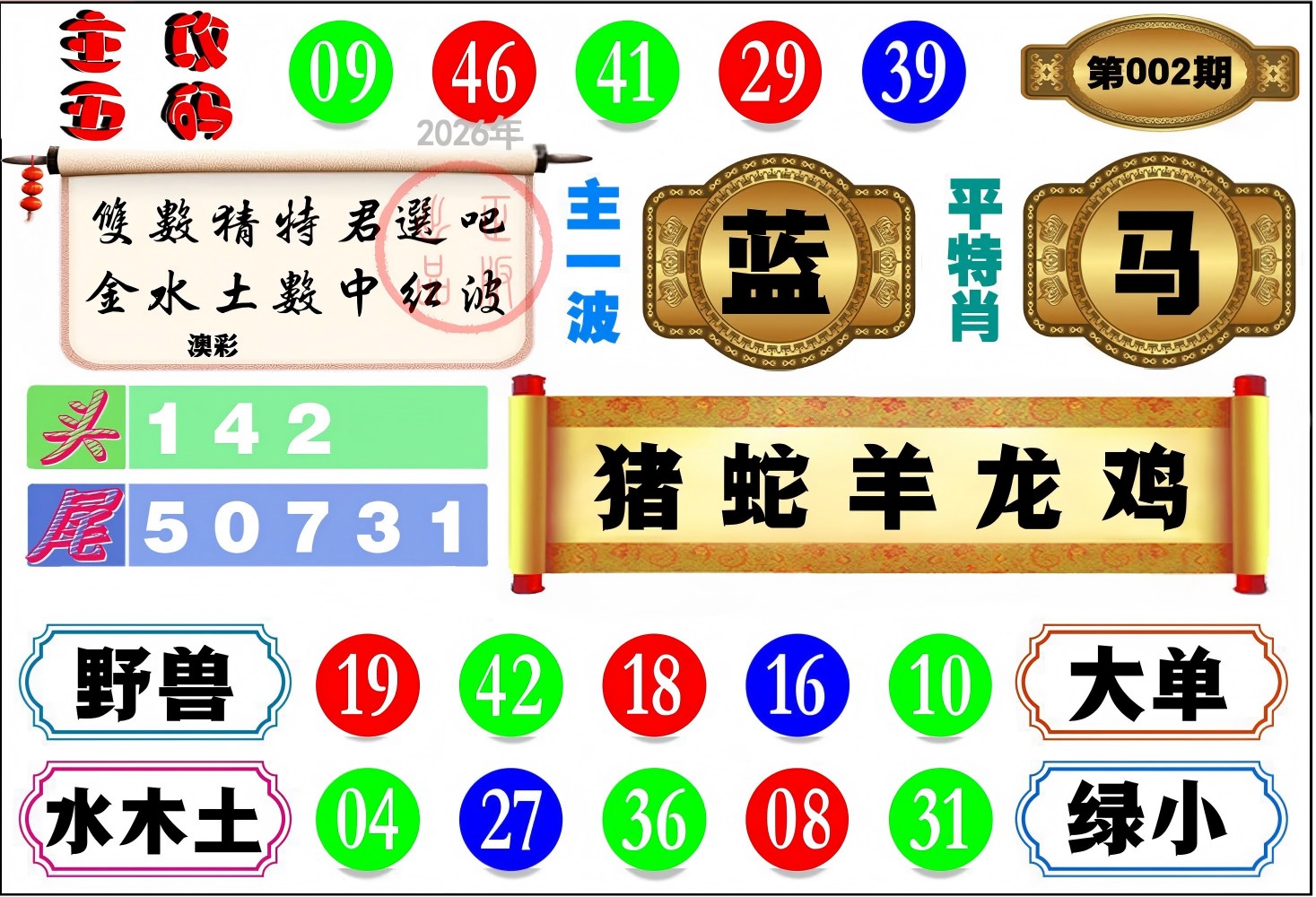 | 002期稳中⑦肖:羊虎马蛇猪猴鸡 |