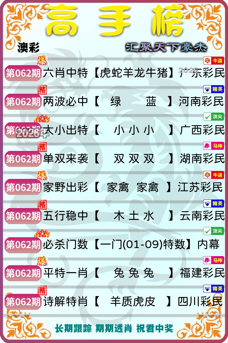 052期【打工仔】精选12码开虎17准