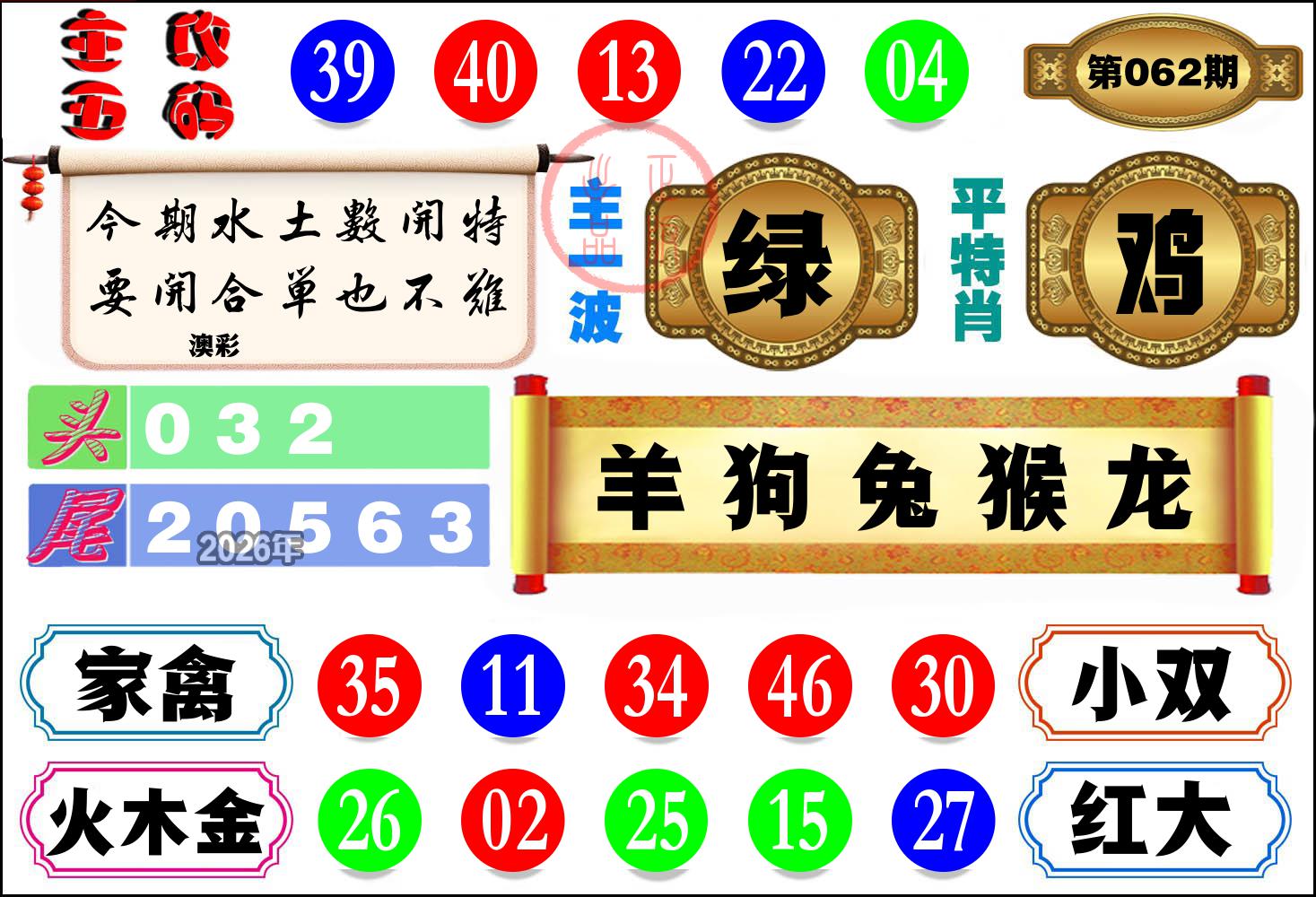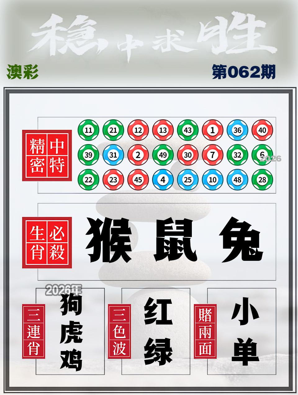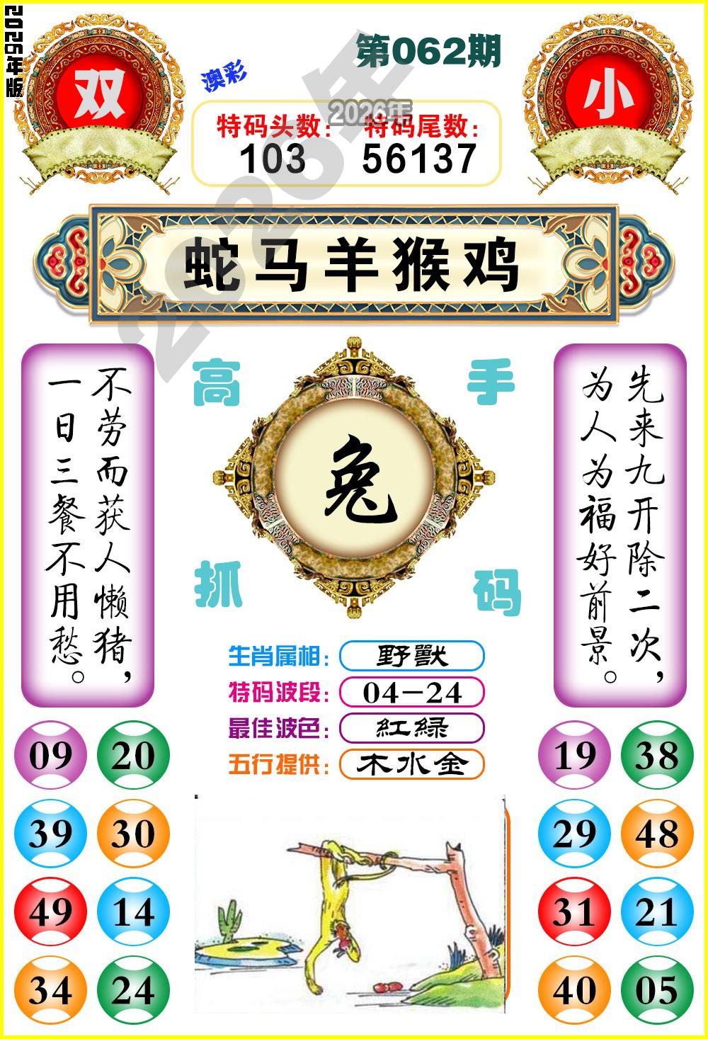 057期稳中⑦肖:虎羊猪鼠兔蛇猴