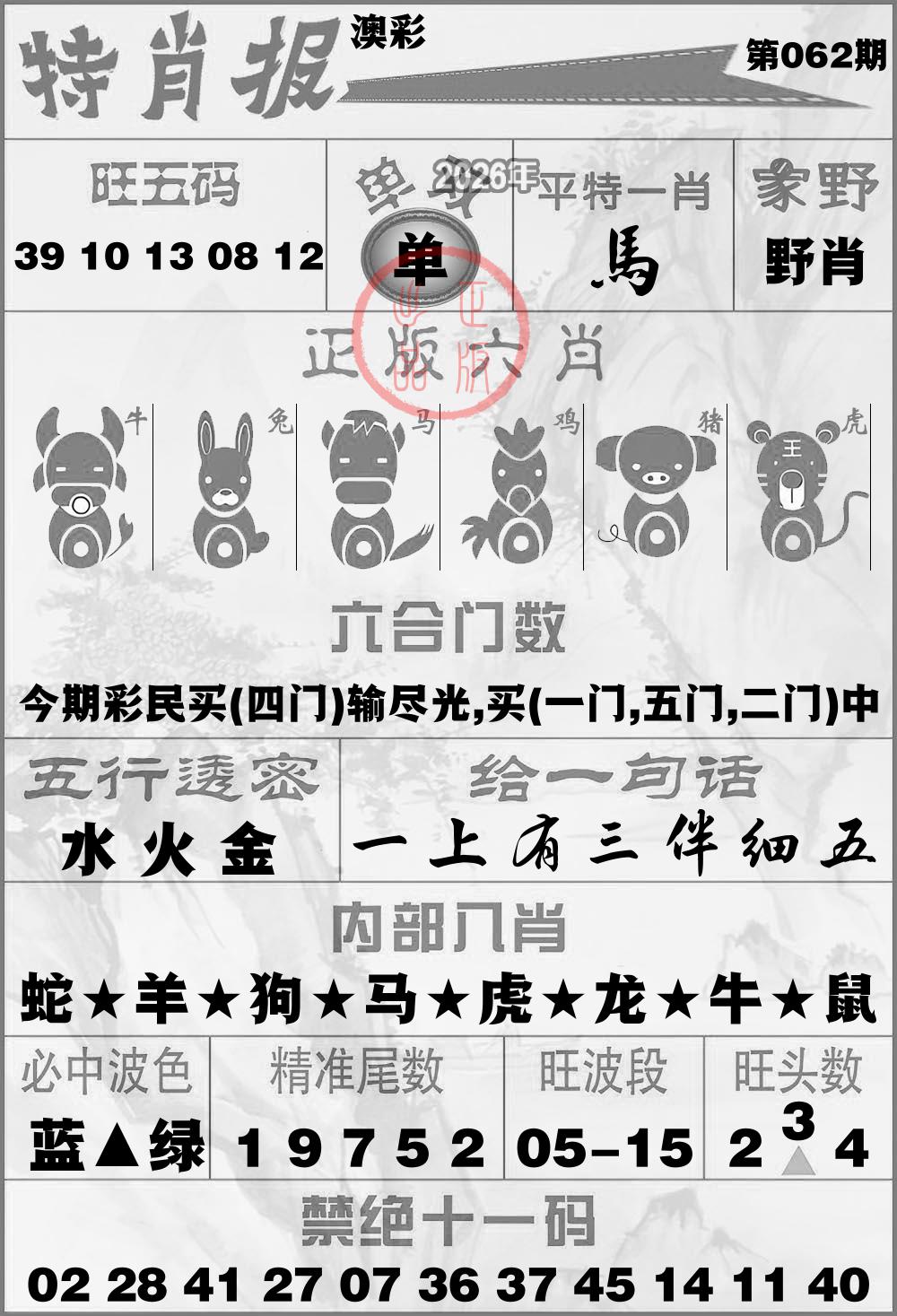 推荐 3肖: 牛蛇龙稳准狠